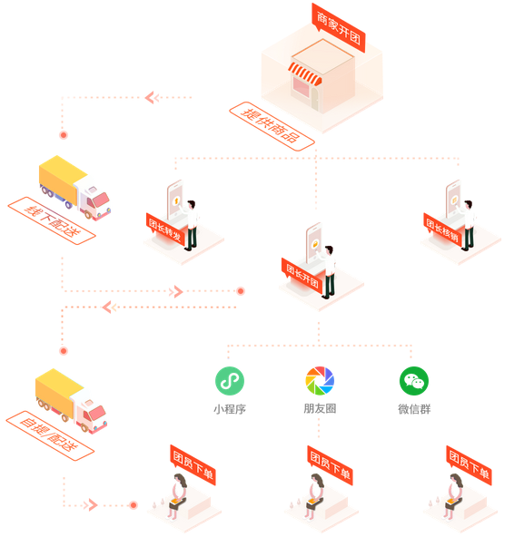 获客成本低、团长负责、熟人拼团、复购率高